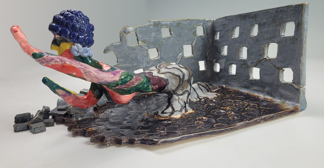 "Lost Dreams" was inspired by the constant struggles I've experienced being a woman in this world. Growing up in a military household perpetuated the strict gender norms I was placed into. I felt small from a young age. I had to be the perfect model child. Being told what I can and can't do my whole life all in the name of safety. I was conditioned to restrict my dreams to conform to this structured view of society. I joined the Army instead of pursuing the Peace Corp because at least the 'Army' has a duty to protect their soldiers. This sculpture helped me release a lifetime of pent-up emotions and feelings so I can start to break free.