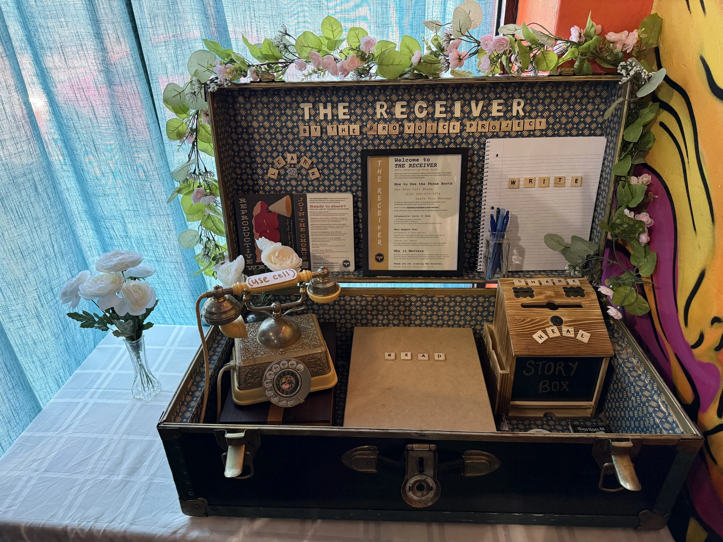 THE RECEIVER is a reimagined phone booth designed to inspire storytelling and receiving, The Receiver invites visitors to sit, receive stories shared previously with PVP, and consider sharing their own stories with us.