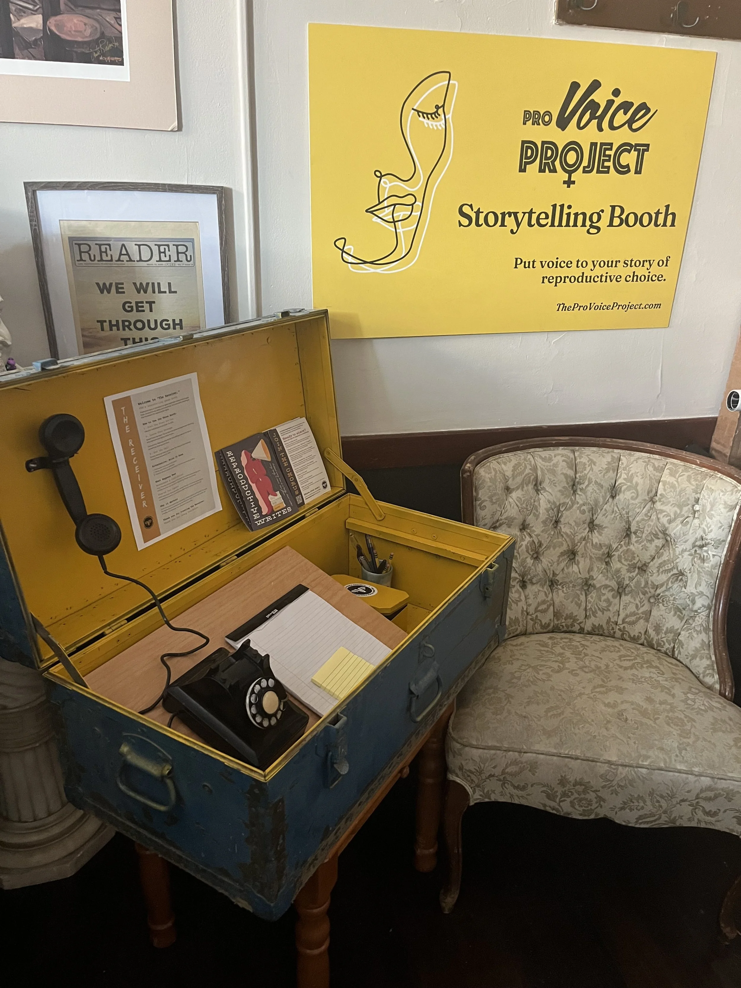 THE RECEIVER is a public art installation— a reimagined phone booth that creates space for truth-telling. Visitors enter, pick up a symbolic phone, and share stories of abortion, pregnancy, miscarriage, or reproductive care. Stories may be recorded (anonymously, max 3 minutes via Google Voice) and can later be excerpted in community events and advocacy projects.